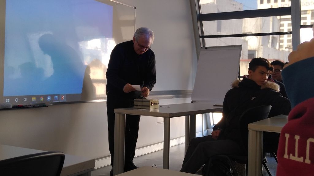 Los alumnos de 5to año de secundaria realizan una visita a la Universidad CAECE ubicada en Avenida de Mayo para recibir una charla informativa sobre la nanotecnología dirigida por el Dr. Alberto D’ Andrea.