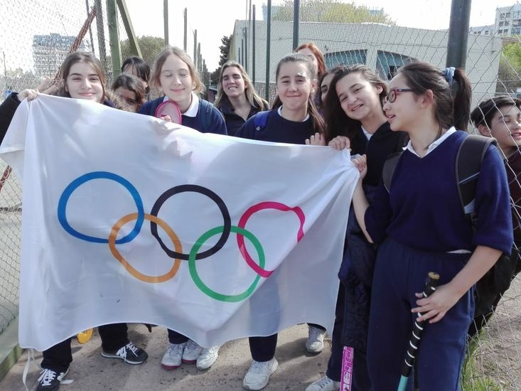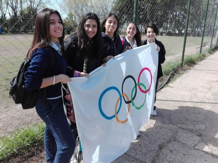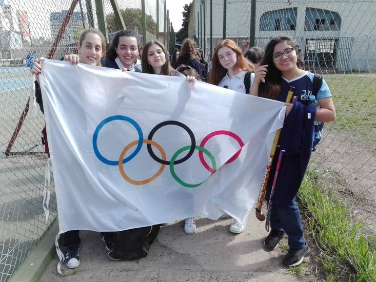 Ese mismo día los alumnos del NUSE, presentaron la bandera Olómpica que los acompañarán cada vez que concurran al Campo de Deportes.